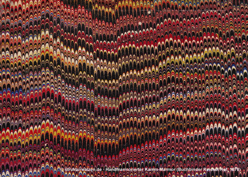 Das marmorierte Papier kommt dann z.B. als Bezug für handgebundene Bücher oder als Vorsatzpapier zum Einsatz.
